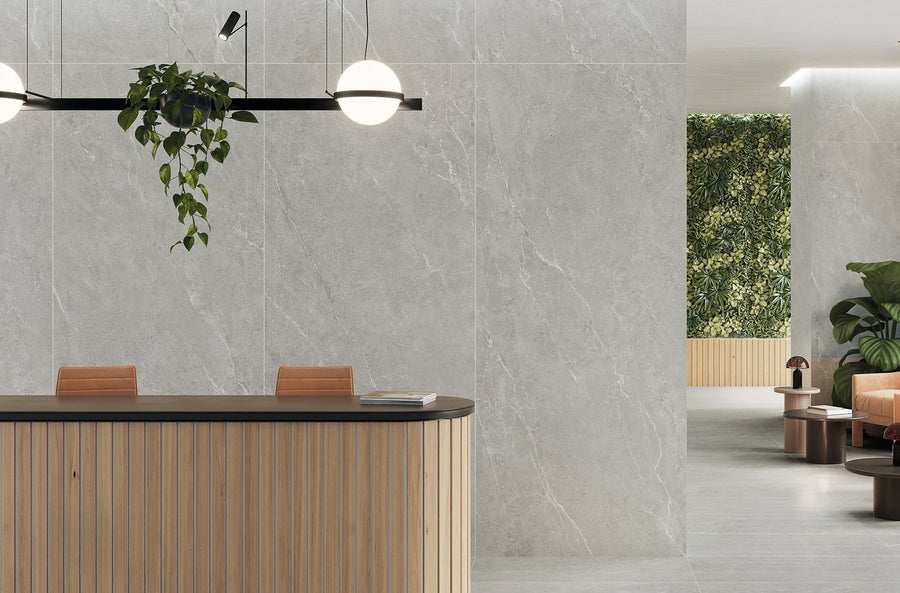 Uppsala Ljusgrå är en modern och tidlös platta i granitkeramik som fångar känslan av äkta sten. Med sin mjuka ljusgråa färg och naturliga mönster skapar den en varm och jordnära atmosfär som passar lika bra i alla hemmets rum som i offentliga miljöer.