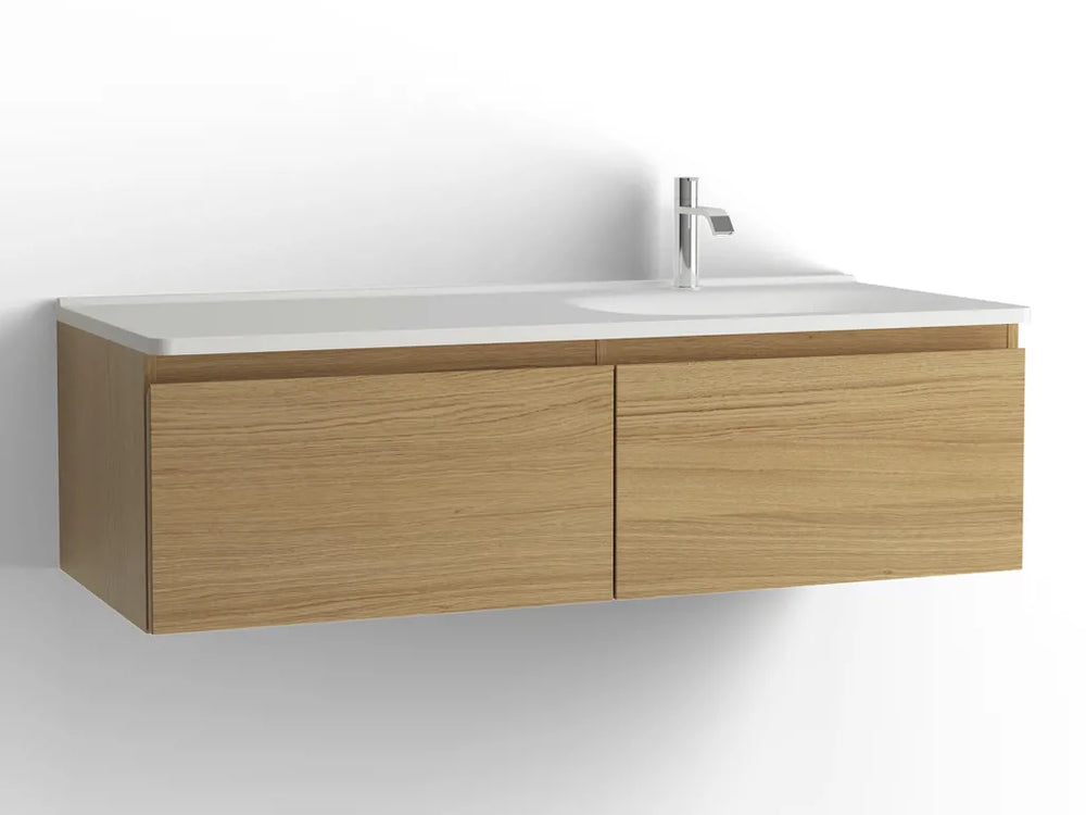 Tvättställsskåp Flow 1200 Vitpigmenterad ek med 2 lådor Vedum