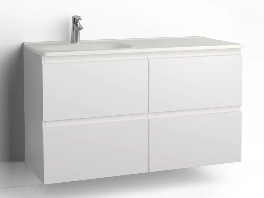 Tvättställsskåp Flow 1200 Vit med 4 lådor Vedum