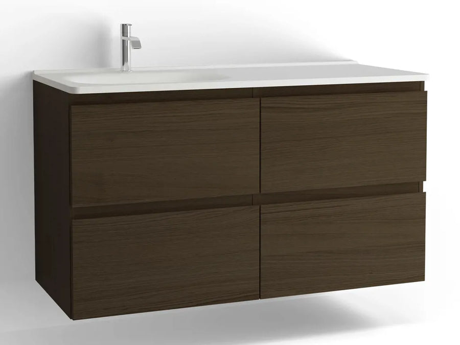 Tvättställsskåp Flow 1200 Brun ek med 4 lådor Vedum