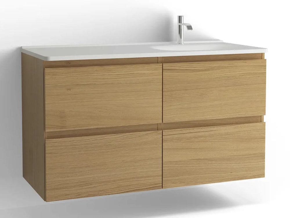 Tvättställsskåp Flow 1200 Vitpigmenterad ek med 4 lådor Vedum