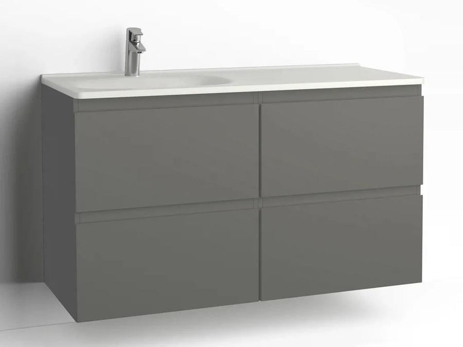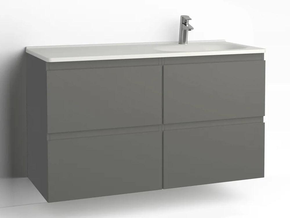 Tvättställsskåp Flow 1200 Betonggrå med 4 lådor Vedum