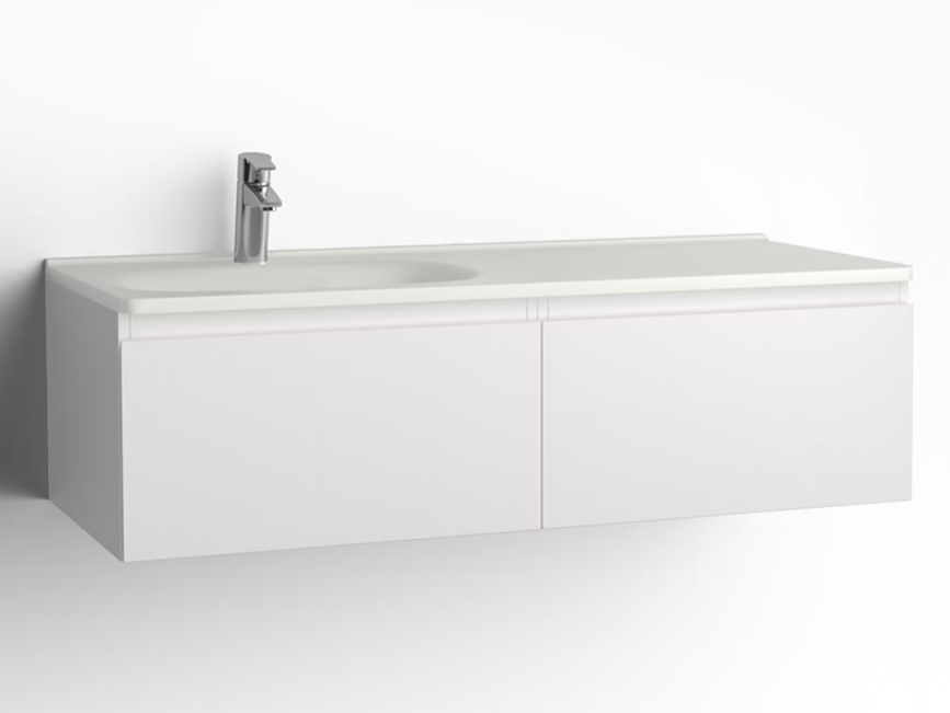 Vedum Flow 1200 Vit med två lådor är ett stilfullt tvättställsskåp i modern design från Vedum. Det ingår i Flow-serien, känd för sina rena linjer och harmoniska proportioner. För att komplettera skåpet kan du lägga till en blandare och tvättställ. Skåpet är utrustat med en dämpad fullutdragslåda med fasade greppkanter.